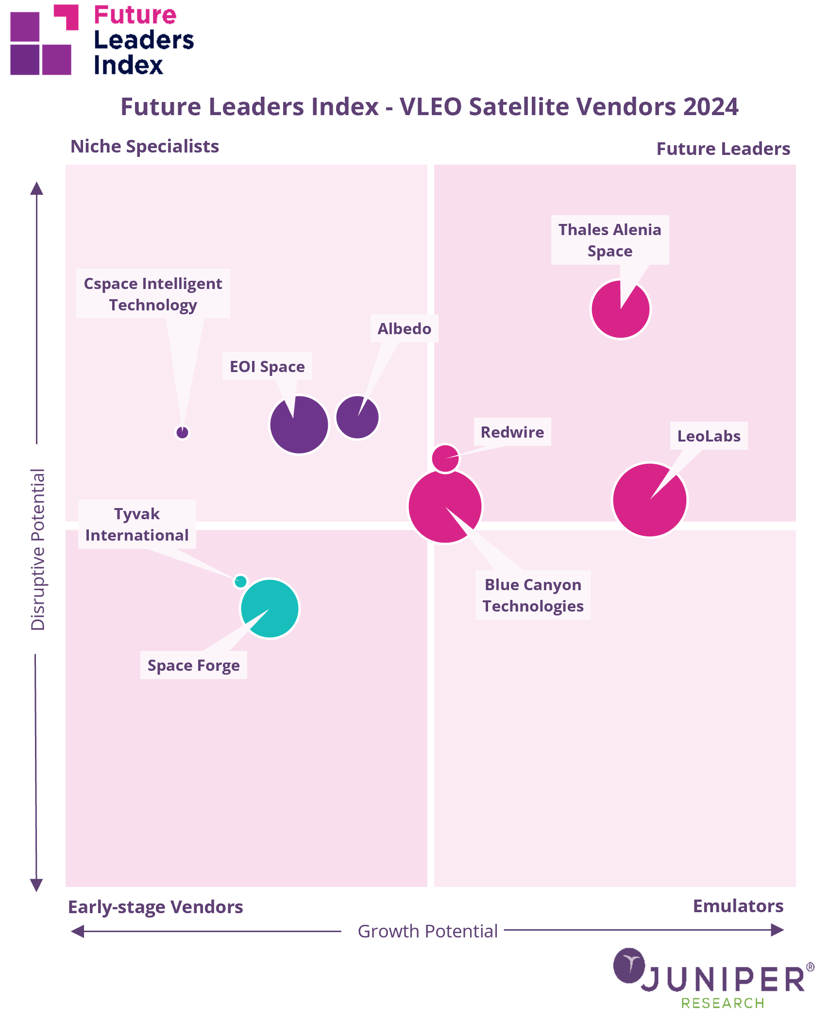 The Juniper Research Future Leaders Index provides a visual representation of the competitive positioning of the companies that are either challenging dominant players in established markets, or positioned to become leaders in emerging markets. It enables stakeholders to view their relative position within the market, and compare themselves against rival suppliers; gaining an appreciation of market dynamics and how Juniper Research ranks and scores leading players.