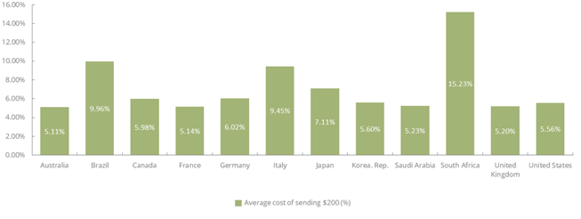 Average Cost of Sending from Select G20 Countries, as of Q3 2024